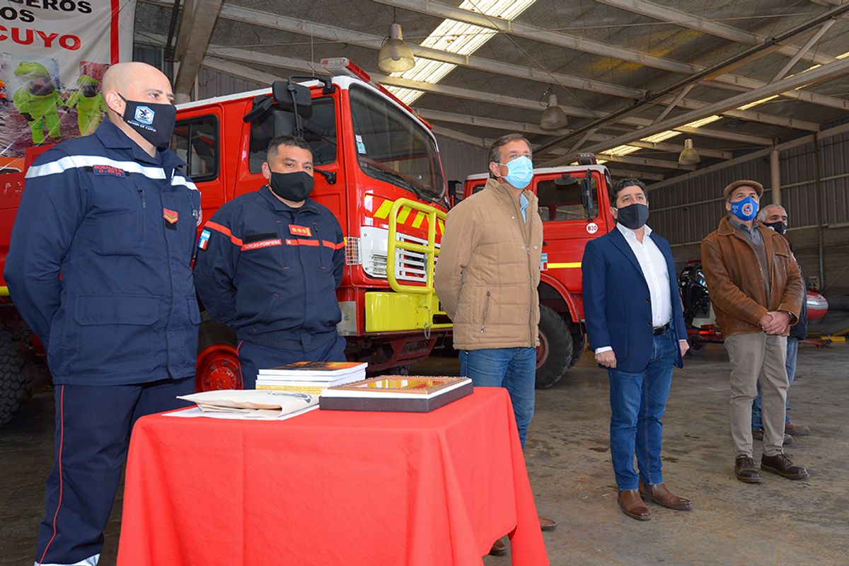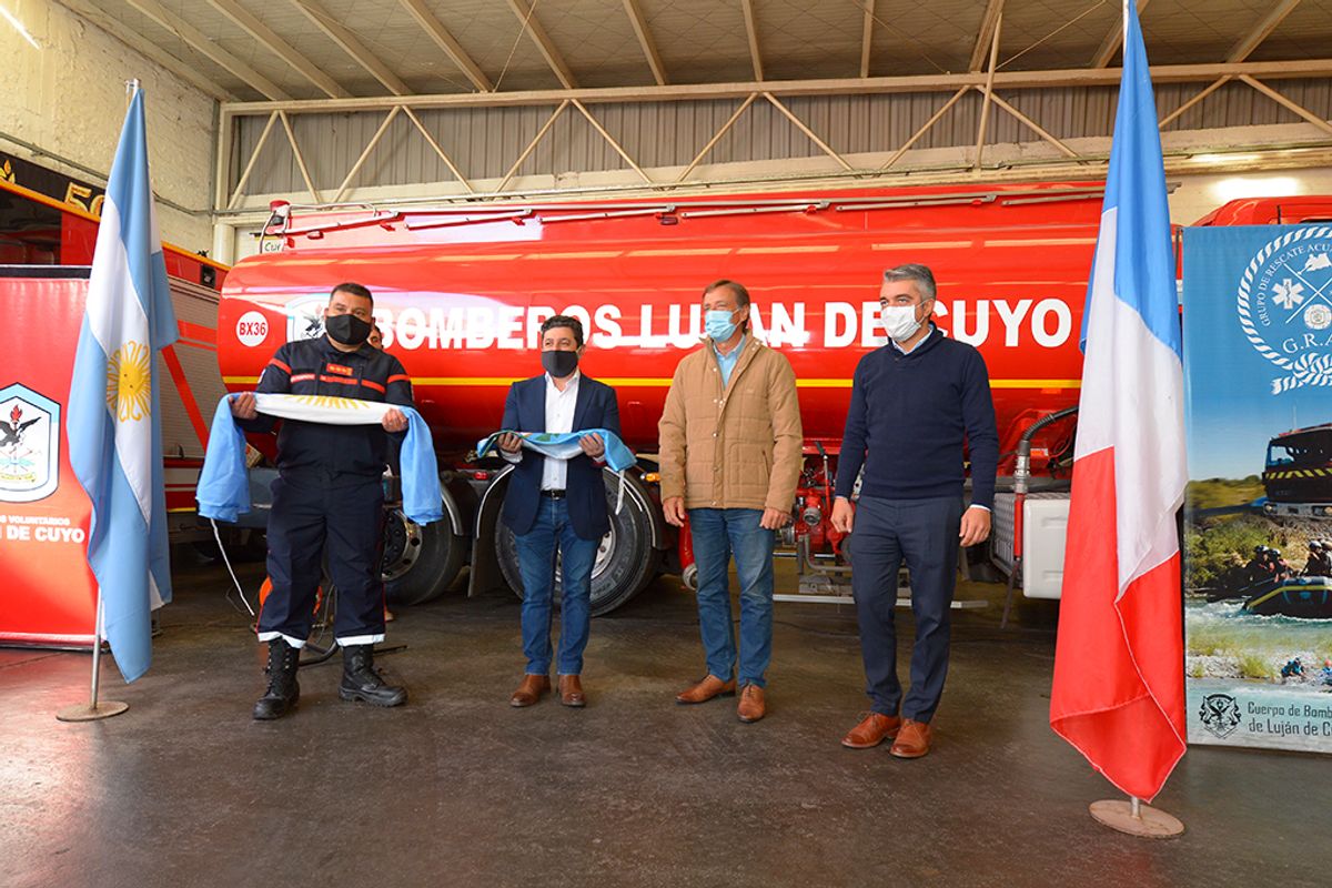 El Gobernador y el Intendente entregaron, al Comandante General Gustavo Tiritera y al Presidente de la Institución Carlos Gómez, una Bandera Nacional y una Bandera Provincial. Mientras que Carlos Gómez entregó una placa al mandatario provincial y el libro "Dos amigos por un sueño", que narra la historia del origen de Bomberos Voluntarios de Luján de Cuyo.